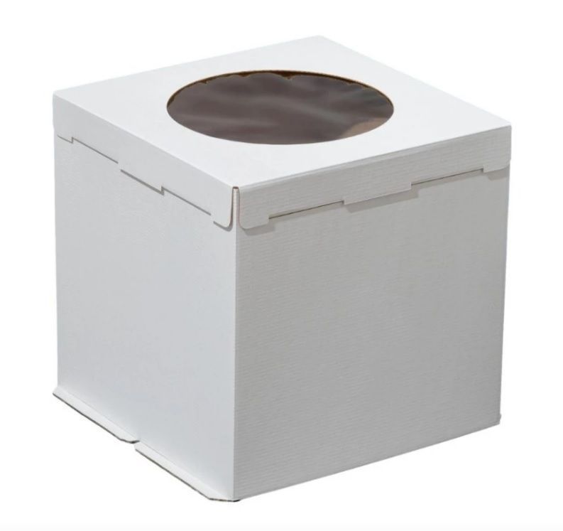 Коробка для торта. Она обеспечивает дополнительную защиту содержимого при транспортировке, предотвращает деформацию коржей и сохраняет эффектный дизайн десерта. Крышка из микрогофрокартона не пропускает внутрь пыль и защищает от загрязнений. Через круглое прозрачное окно покупатели смогут легко рассмотреть торт. Материалы, из которых изготовлены тортницы, химически инертны и не влияют на вкусовые качества десертов.