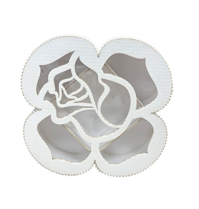 Коробка бумажная Белая роза с окном. Используют для упаковки и транспортировки конфет, орехов, шоколада при доставке.