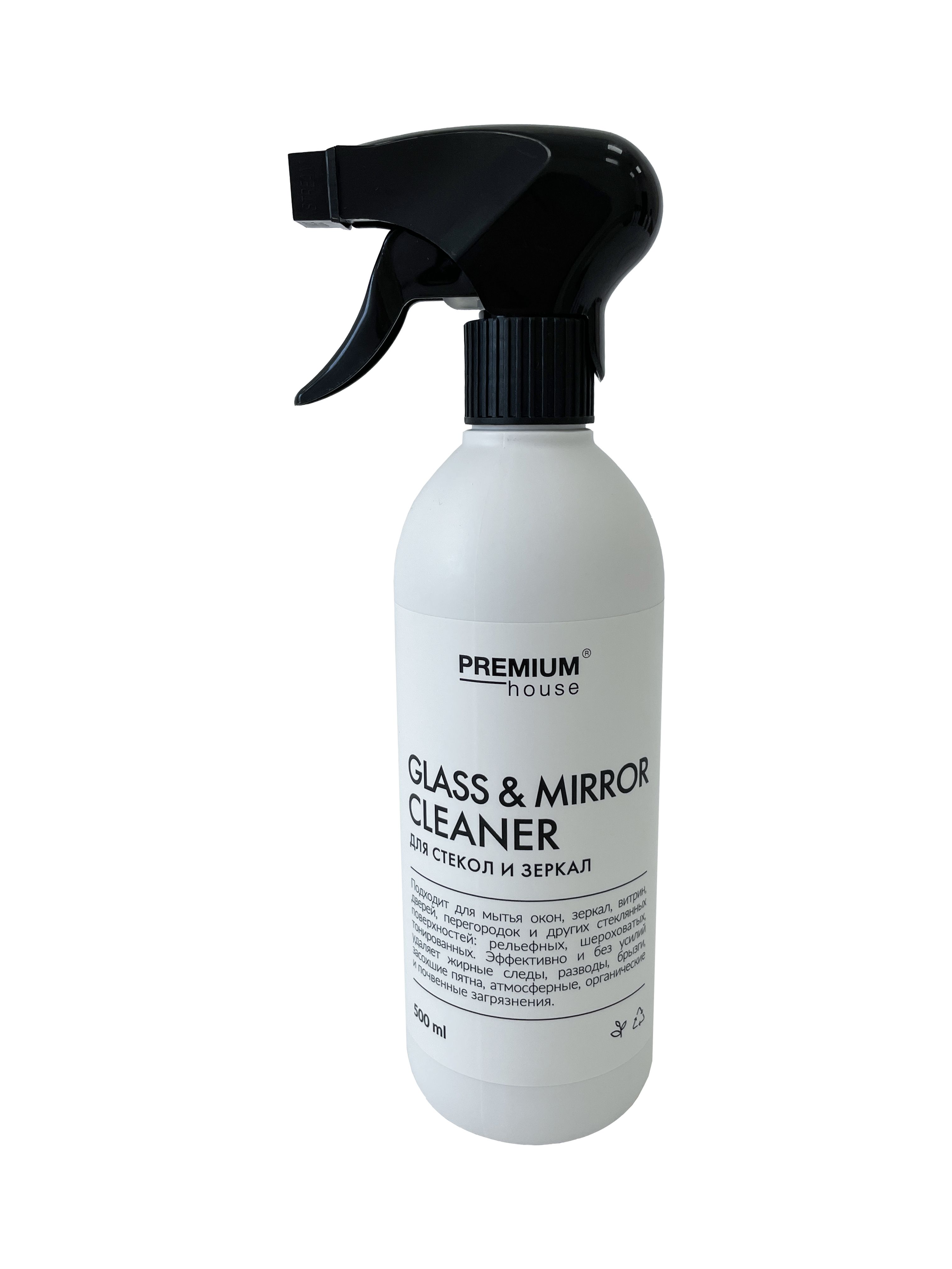 Средство для мытья стекол «Premium House Glass & Mirror Cleaner» 500 мл — мощный спрей для окон, зеркал, витрин, стеклянных дверей, перегородок, панорамных и автостёкол (в т.ч. тонированных, рельефных).