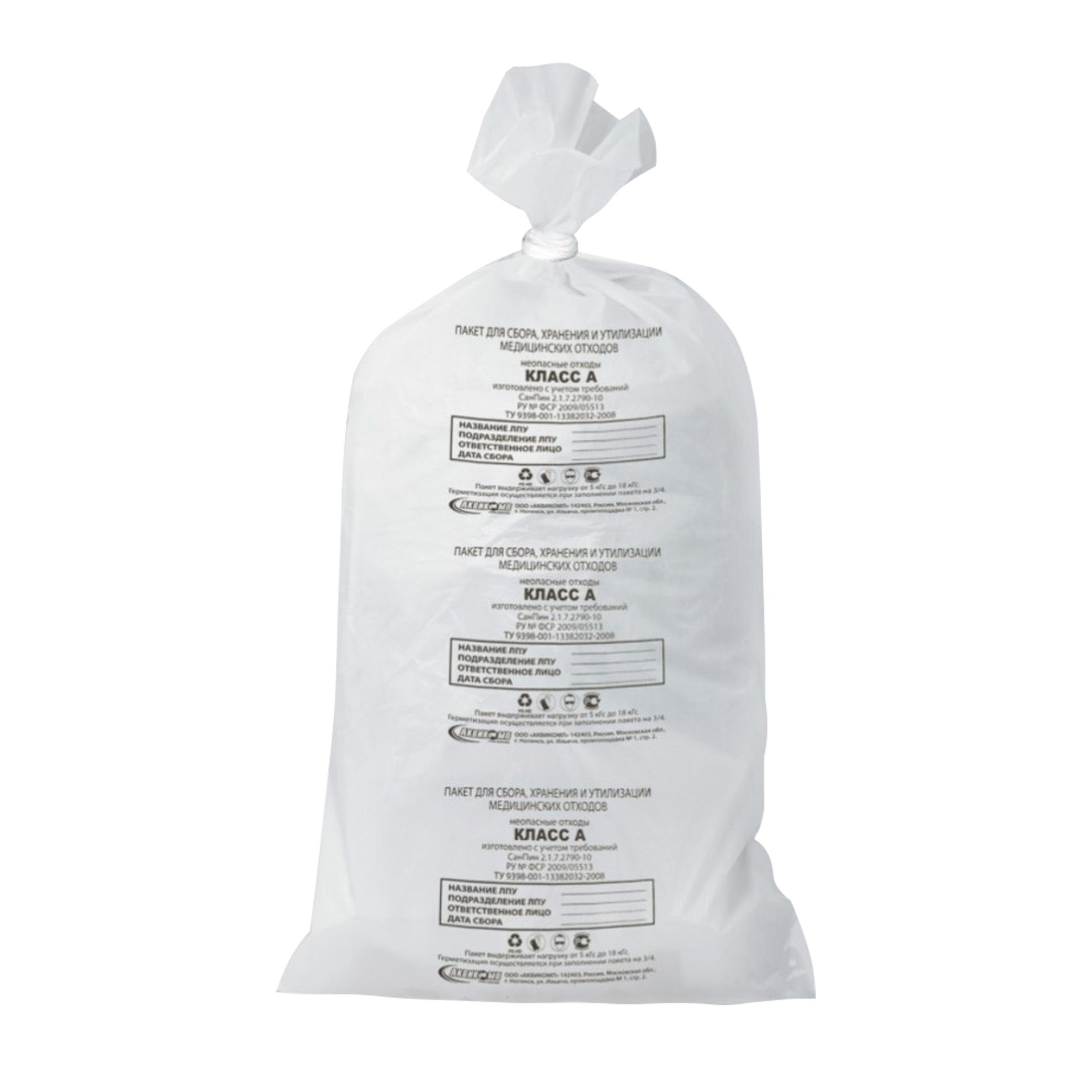 —пакеты (400+300)х950 90л 16мкм Класс А с завязками/250