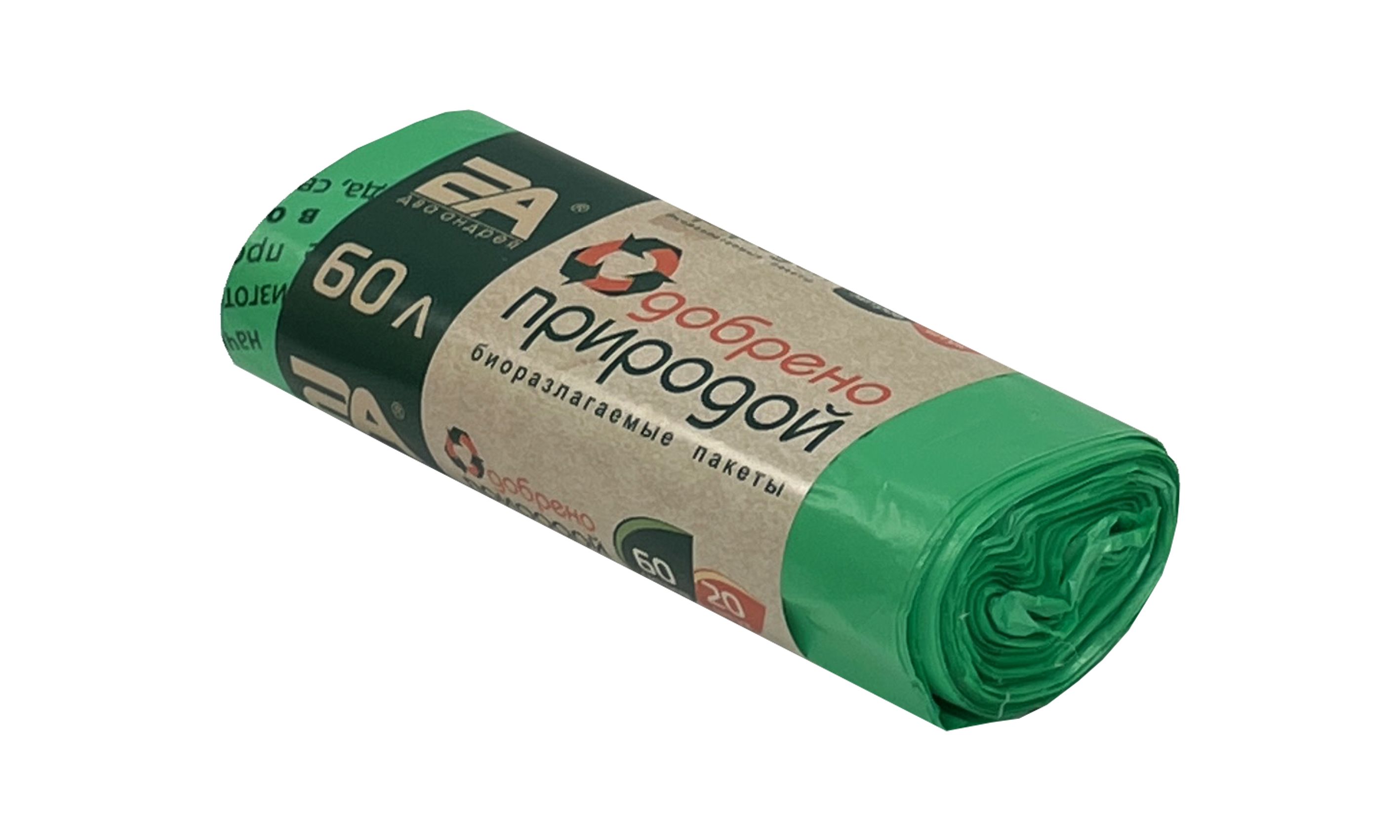 —пакеты д/мусора 60л 20шт "Одобрено природой" зелен.