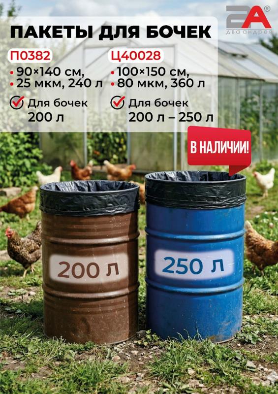В наличии пакеты для бочек объемом: