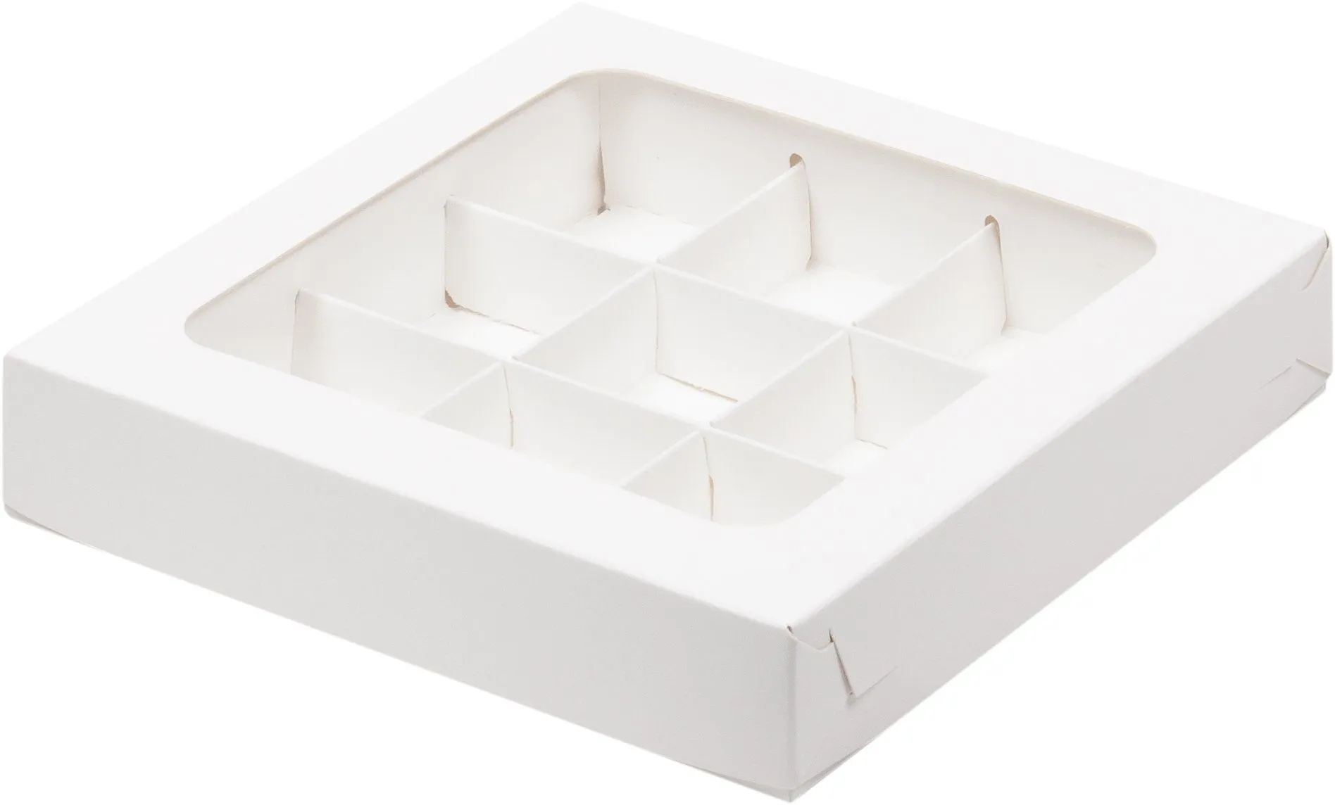Коробка бумажная для конфет белая с окном. Используют для упаковки и транспортировки конфет при доставке.