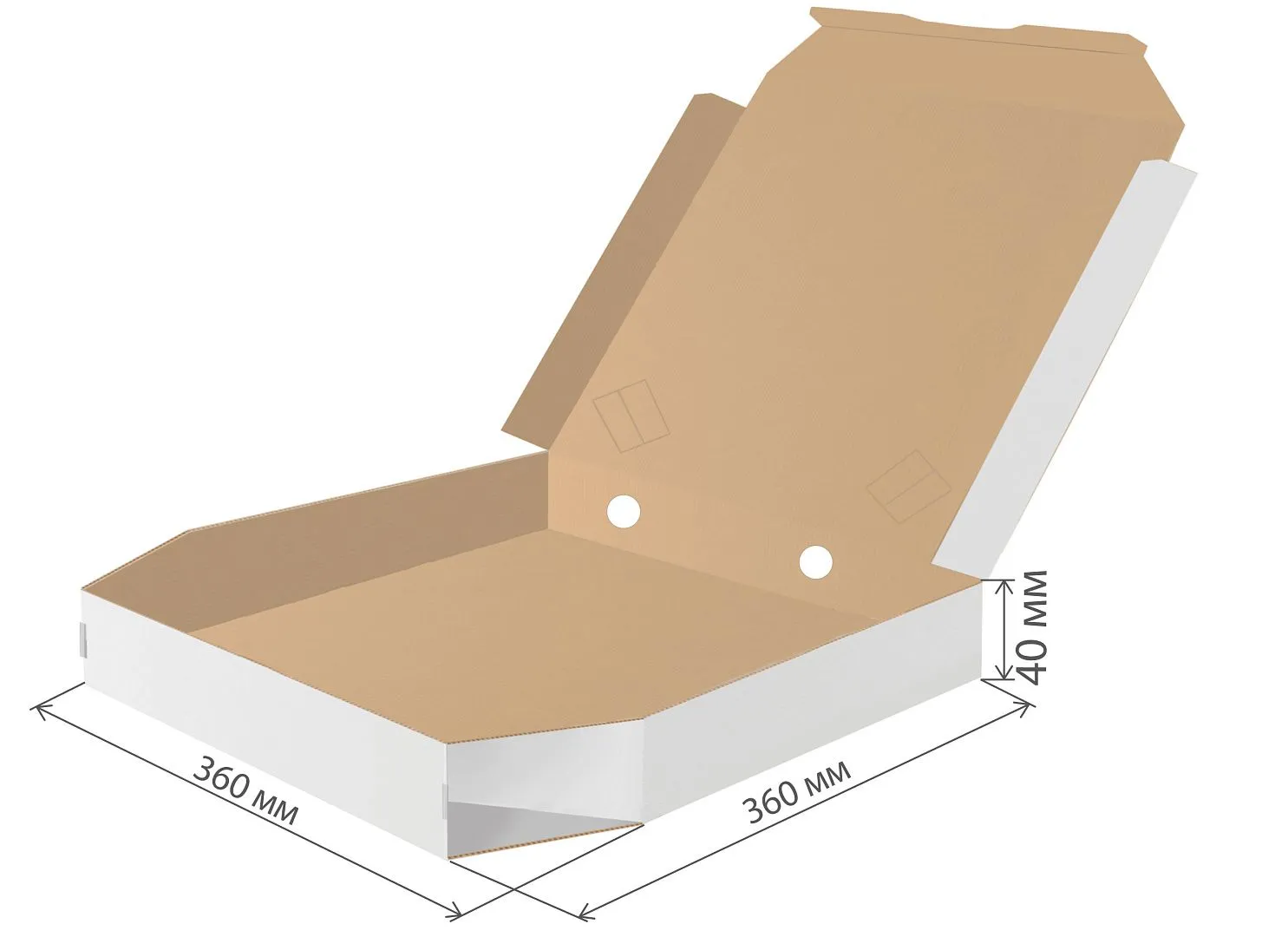коробка под пиццу микрогофрокартон 360х360х40 скошенные углы бел/бур *