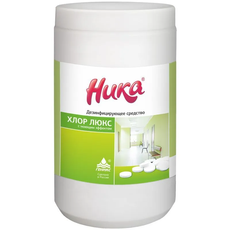 Назначение: Средство «НИКА-Хлор» применяется для дезинфекции твёрдых поверхностей, санитарно‑технического оборудования, белья, посуды, предметов ухода за больными, изделий медицинского назначения, перевязочного материала, а также для обеззараживания биовыделений и крови в учреждениях здравоохранения и других организациях.