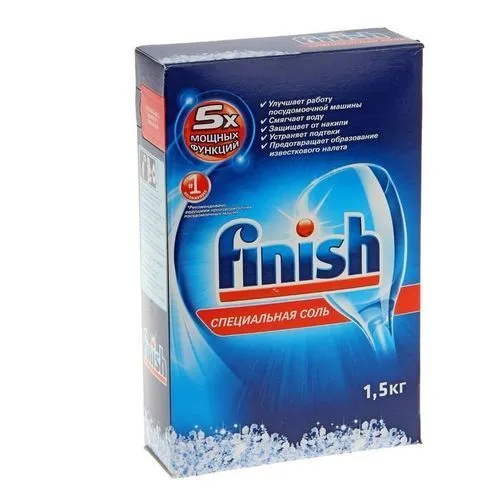 Соль для ПММ «Финиш» 1500 г — гранулы для регенерации ионообменника посудомоечной машины.