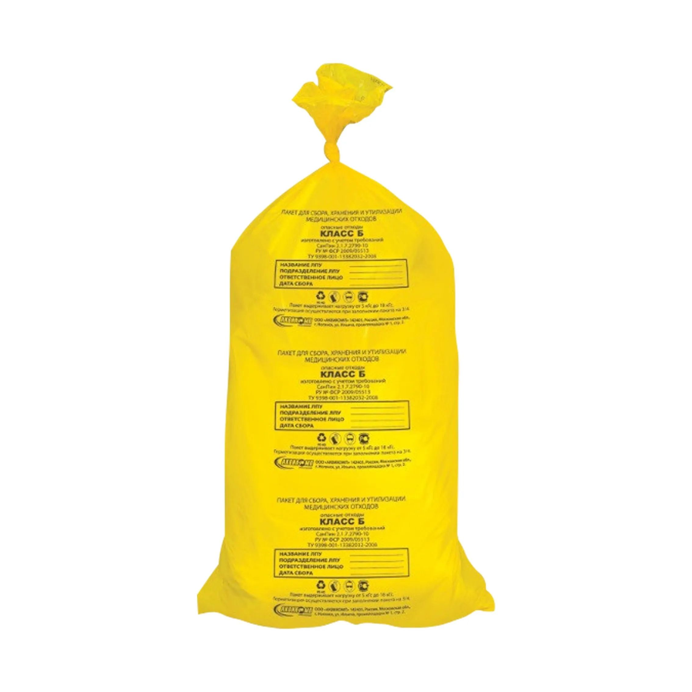 пакеты для медицинских отходов 640х1000 90л 25мкм Класс Б/20