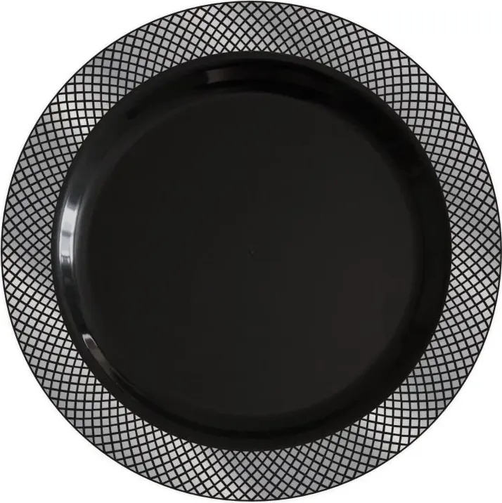 тарелка круглая ПС 230 мм черная каемка серебро/10*