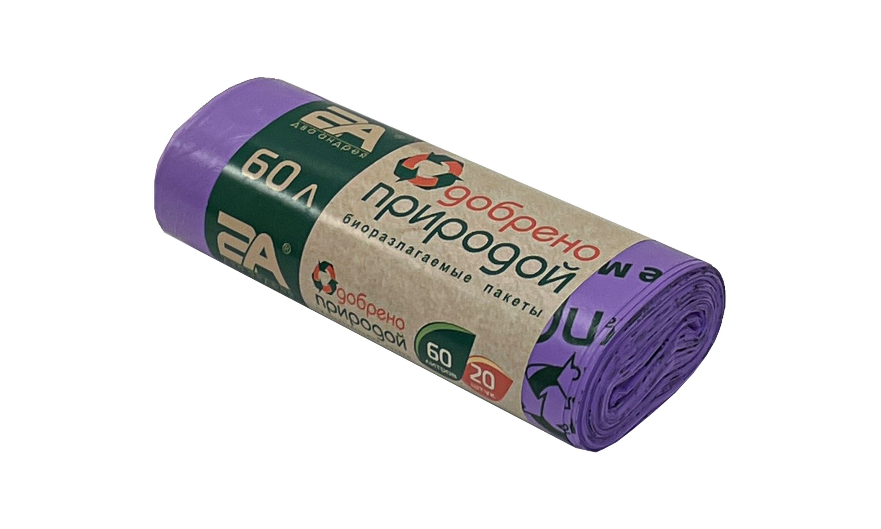 —пакеты д/мусора 60л 20шт "Одобрено природой" фиолет.