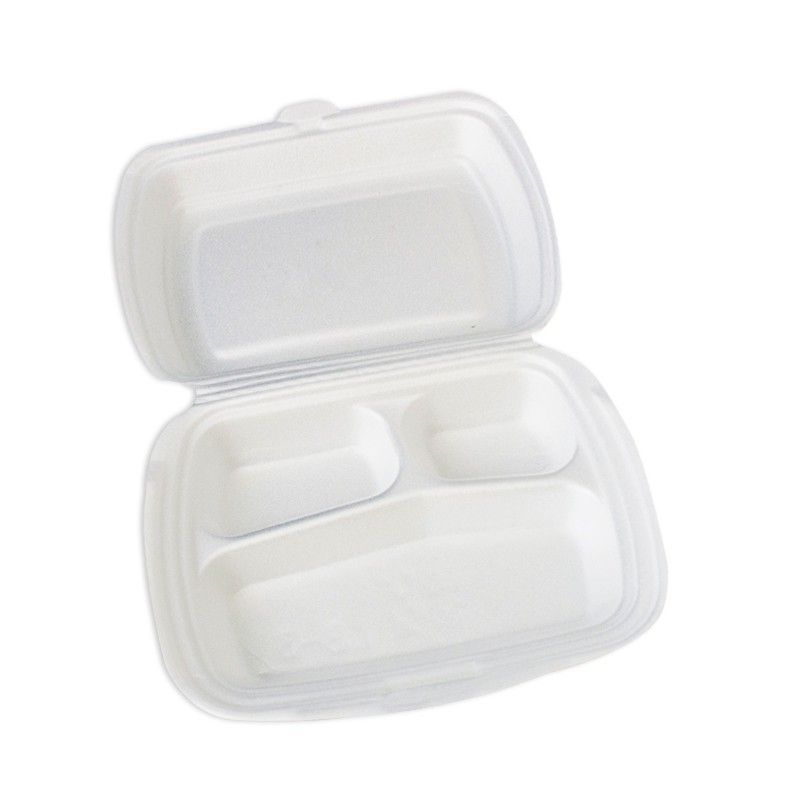 Ланч-бокс — компактный контейнер из вспененного полистирола, предназначенный для упаковки, транспортировки и временного хранения порционных пищевых продуктов. 3 секции позволяют совмещать в одном контейнере несколько продуктов, не допуская их смешивания.