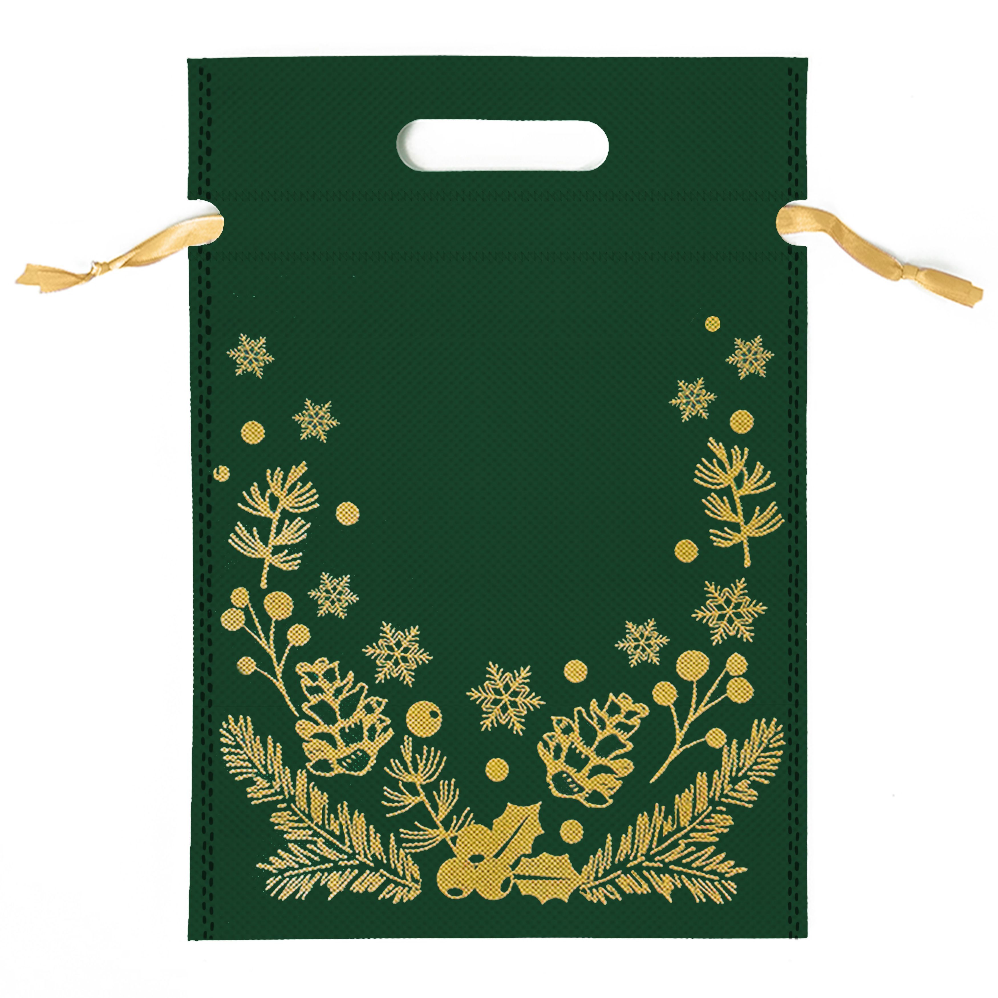 мешочек 1,3 кг Текстильный 23х32,5 Золотые шишки на зеленом