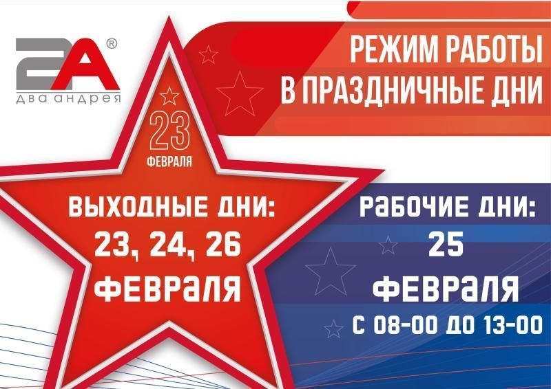 Выходные дни 23, 24, 26 февраля.